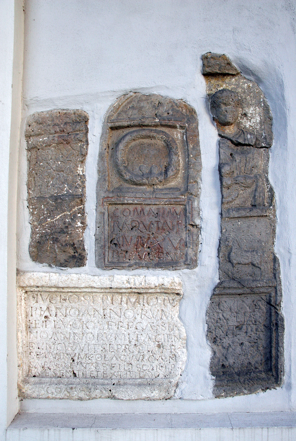 A római kori köveket 1842-ben találták a Szőlőhegyen. Ezen leletek közül négy darab római sírkövet beépítettek a katolikus plébánia templom felőli falába. Legértékesebb közülük Septimus Celer gyermekeinek i.sz. 217-ből származó sírtáblája, mert ezen megtalálhatók az akkori consulok nevei.