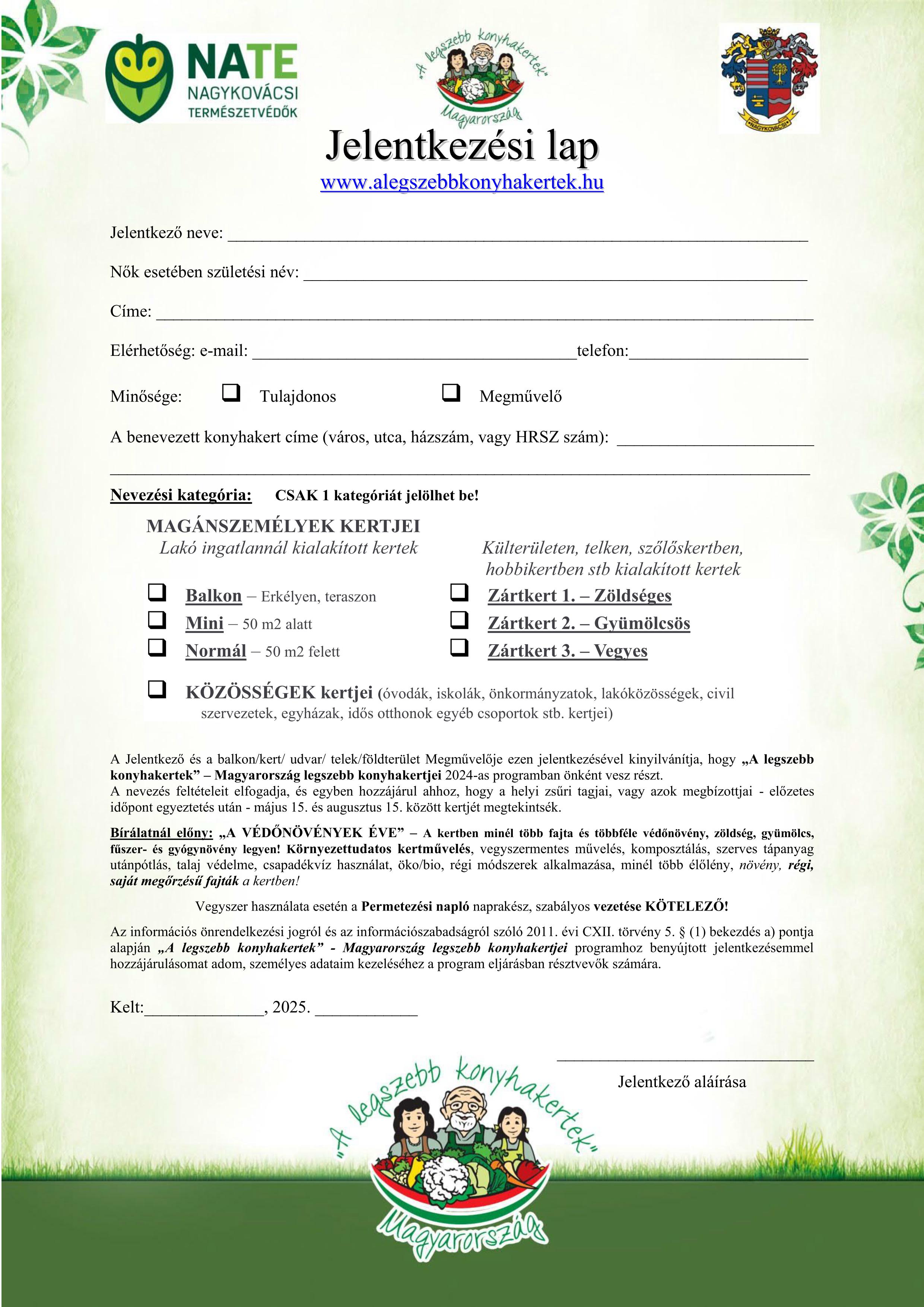 A legszebb konyhakertek - Jelentkezési lap 2025