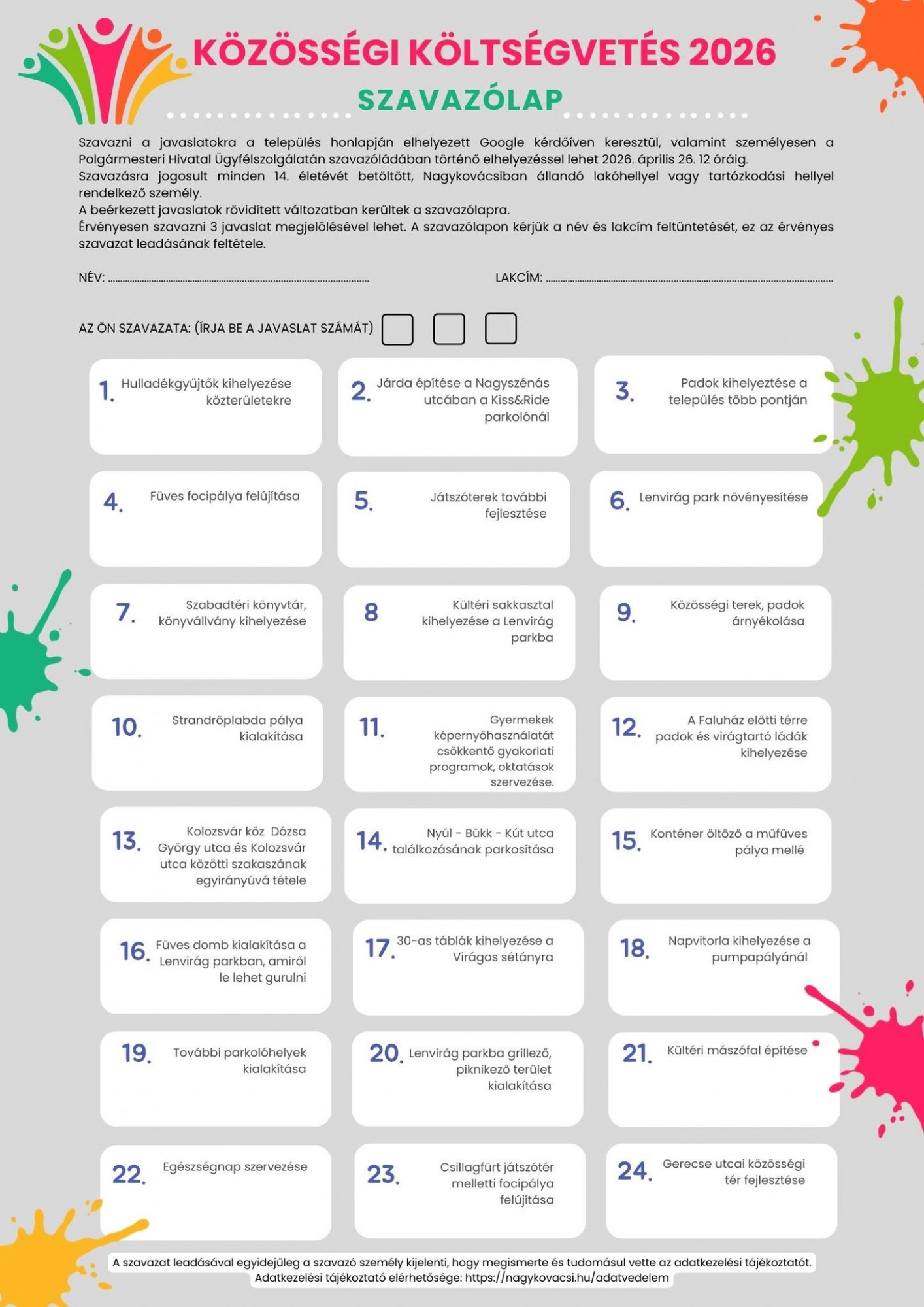 Szavazólap Közösségi költségvetés 2026