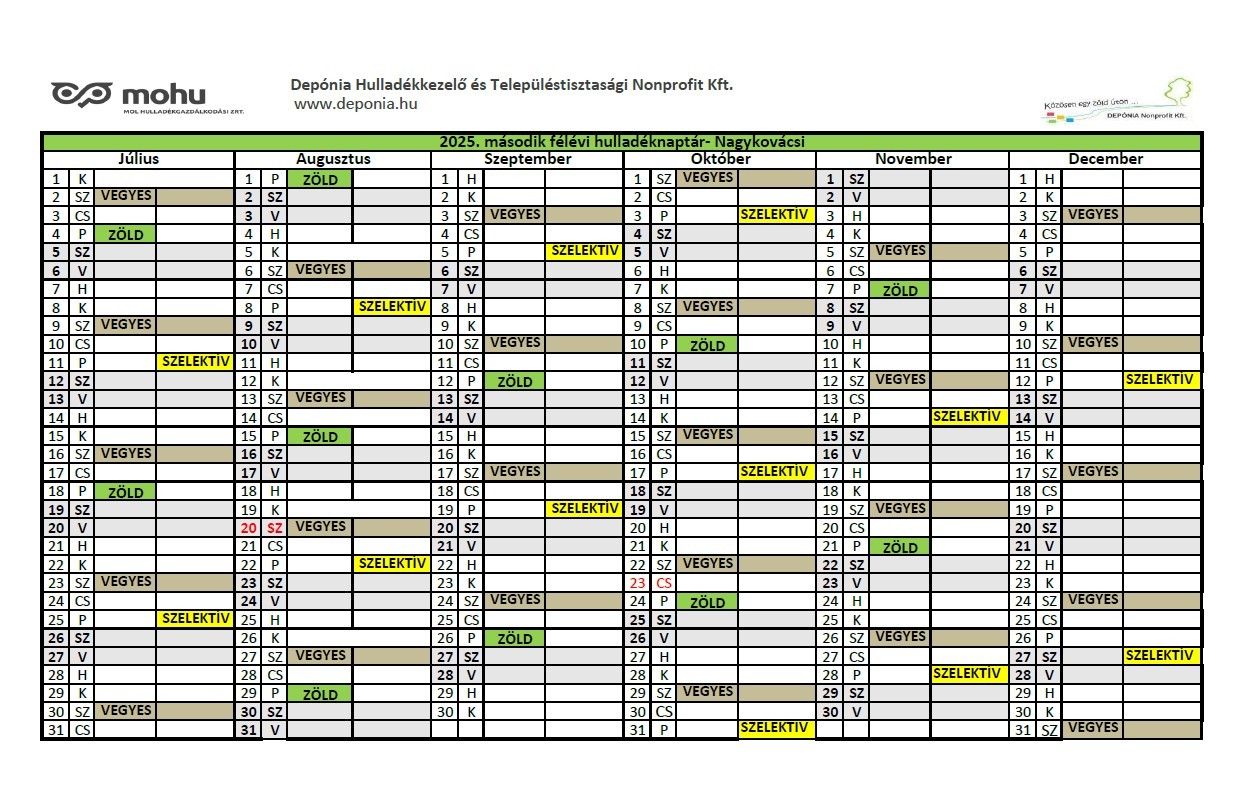 Matricás zöldhulladék gyűjtése 2025. november 7-én és november 21-én. (A Depónia Kft. jelezte, hogy a hulladéknaptárban rosszul jelentették meg az időpontot!)