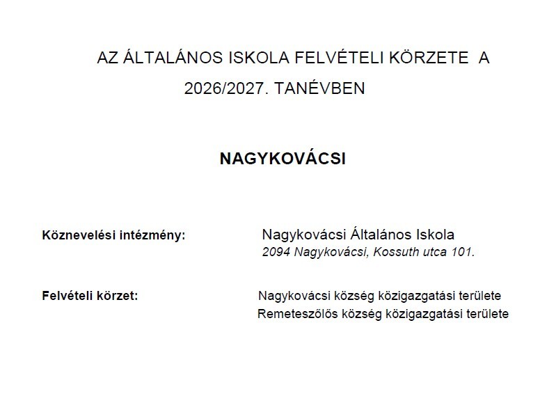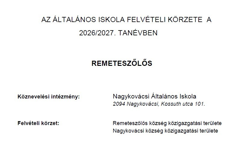Tájékoztató az általános iskola felvételi körzethatáráról - 2026/2027.